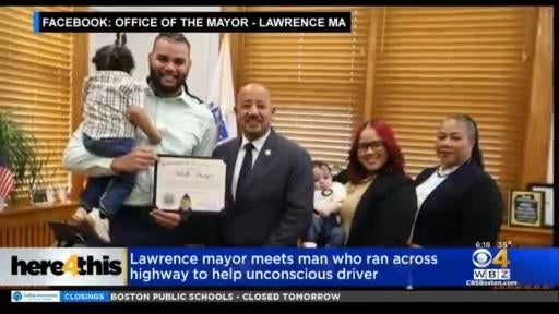 Lawrence mayor meets man who ran across highway to help driver