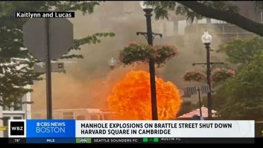 Two manhole explosions shut down Harvard Square in Cambridge. WBZ-TV's Tammy Mutasa reports.