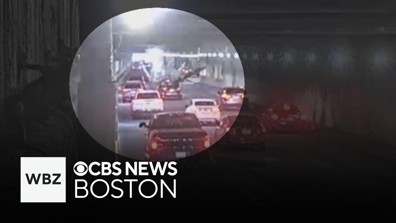 MassDOT said a section of "non-structural concrete at an expansion joint" under Huntington Avenue fell into a travel lane Friday afternoon. WBZ-TV's Beth Germano reports.