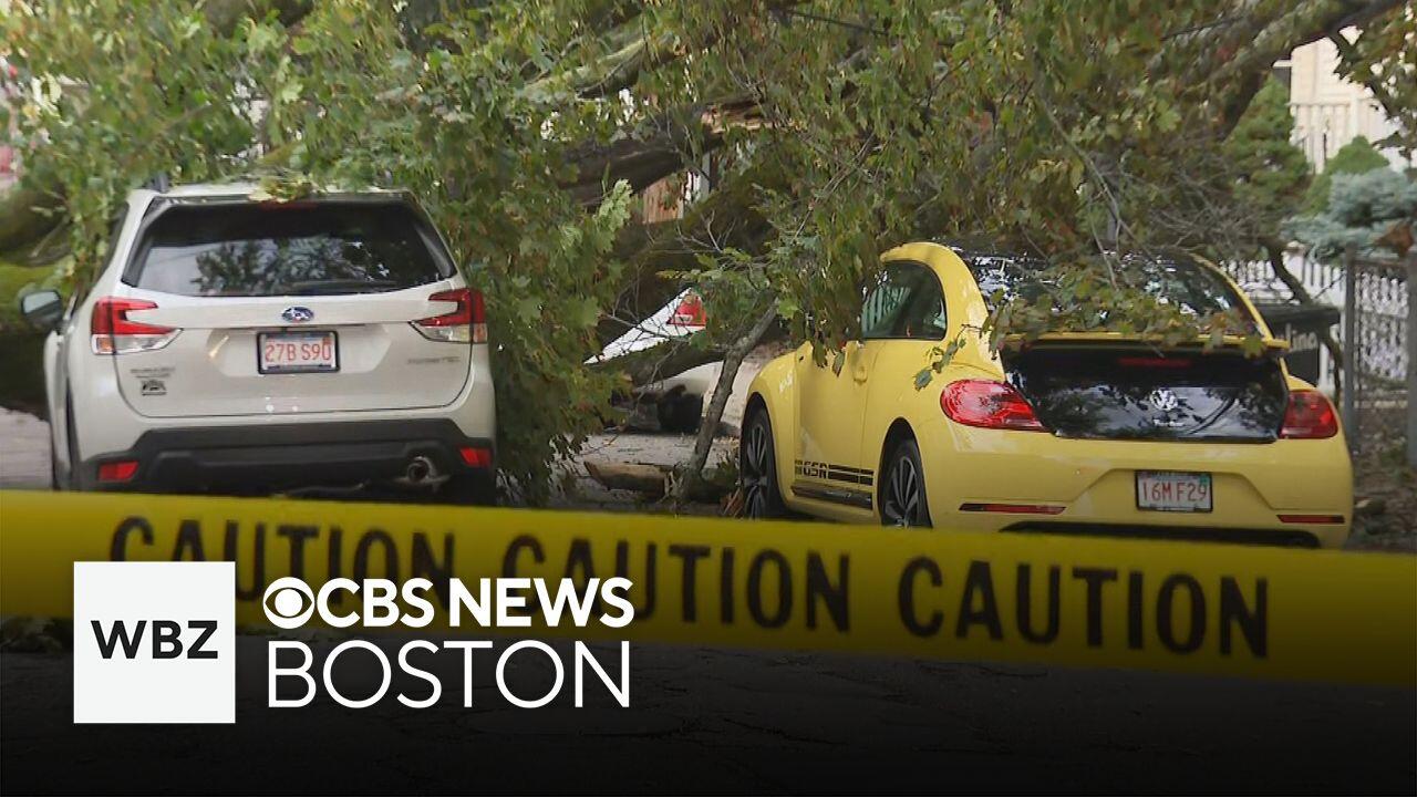 A driver escaped serious injury after a tree fell across the road in Somerville. WBZ-TV's Brandon Truitt reports.