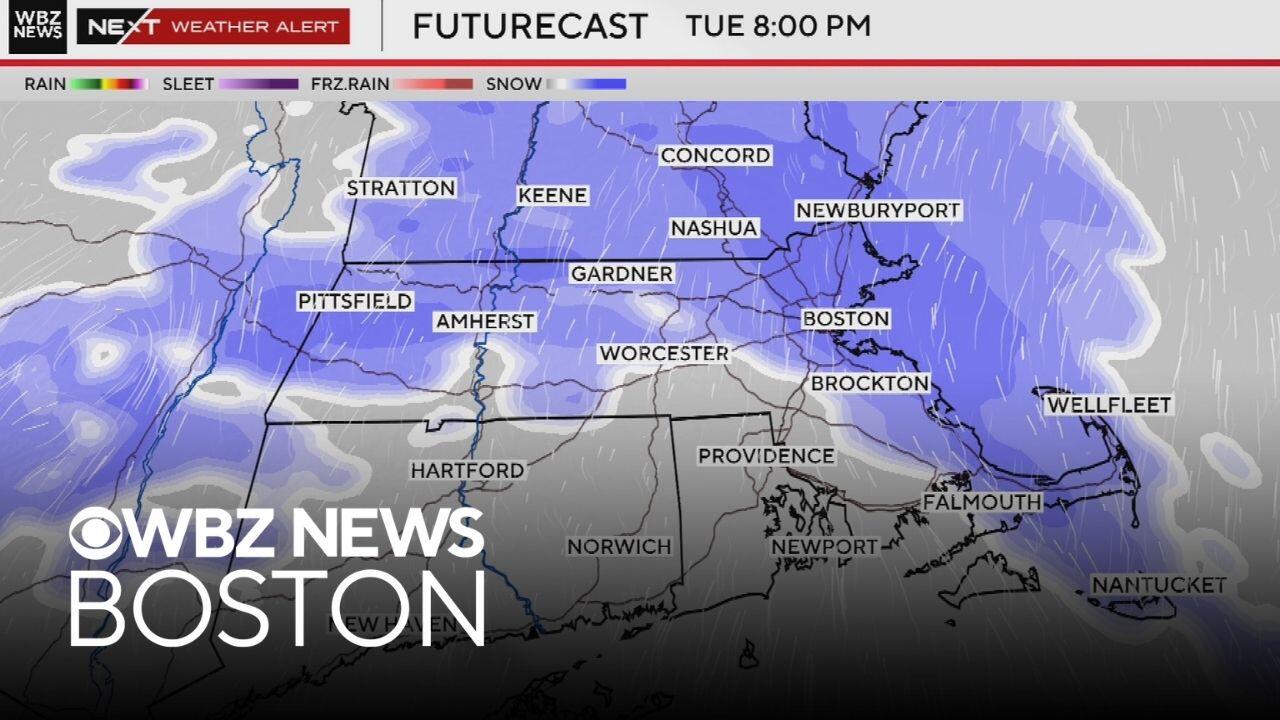 Plowable snow is expected in Massachusetts Tuesday, and WBZ-TV meteorologists are keeping an eye on potential storms this weekend.