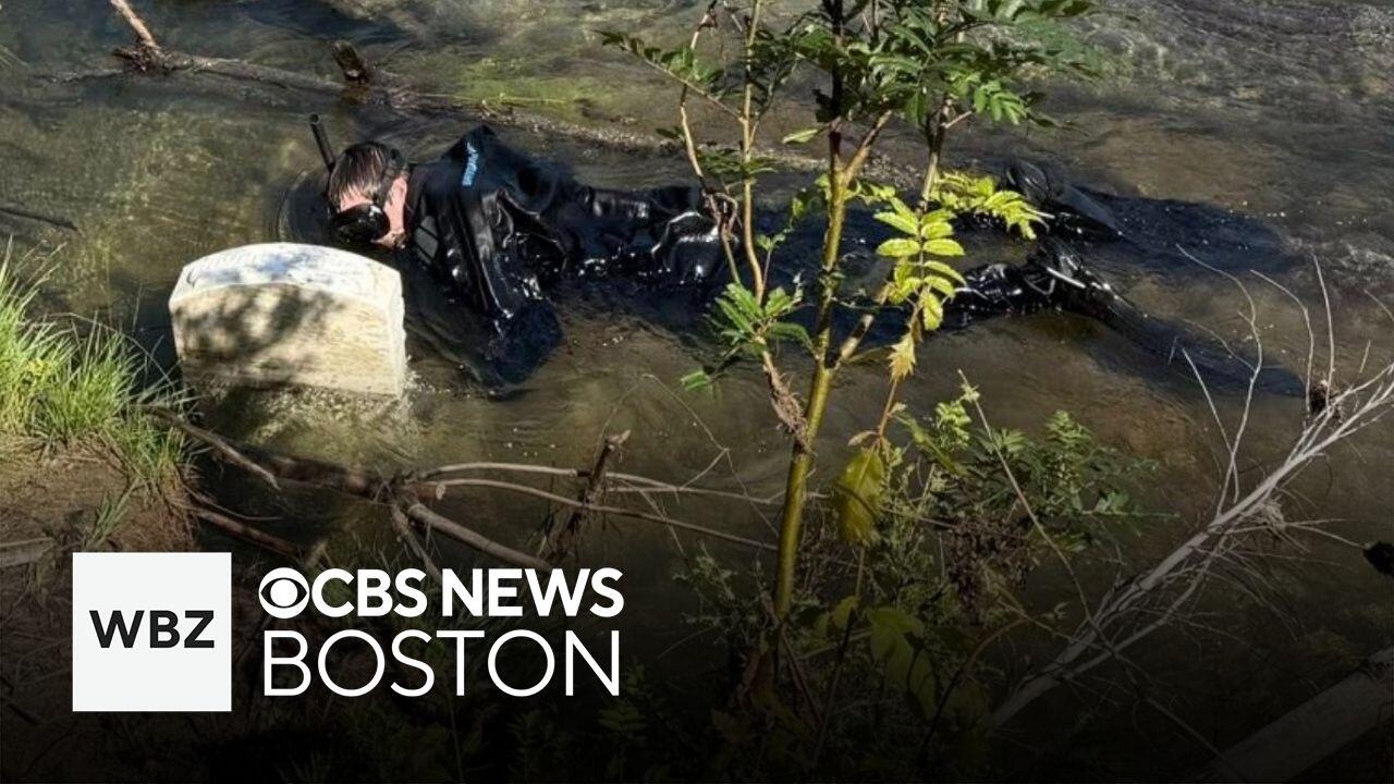 Headstones and remains tumbled into the Baker River in New Hampshire.