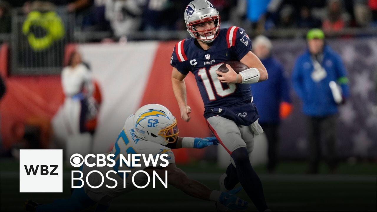 New England Patriots quarterback Drake Maye speaks after his team beat the LA Chargers, 16-3, in the postseason.
