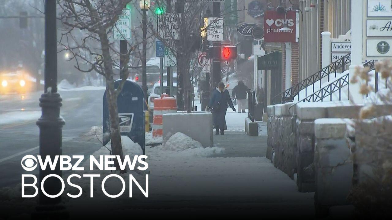 WBZ-TV meteorologist Alyssa Andrews has a look at the weather in Andover, Massachusetts during the storm Friday morning.