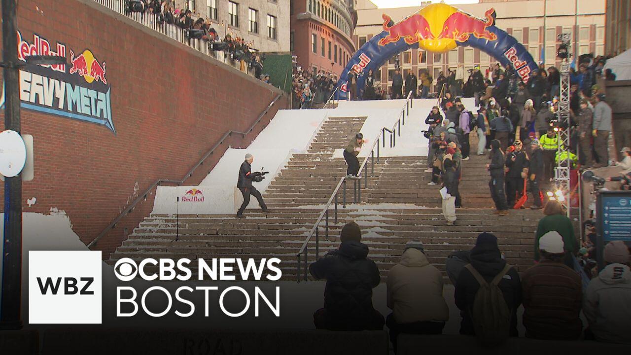 Snowboarders take over City Hall Plaza for Red Bull Heavy Metal event