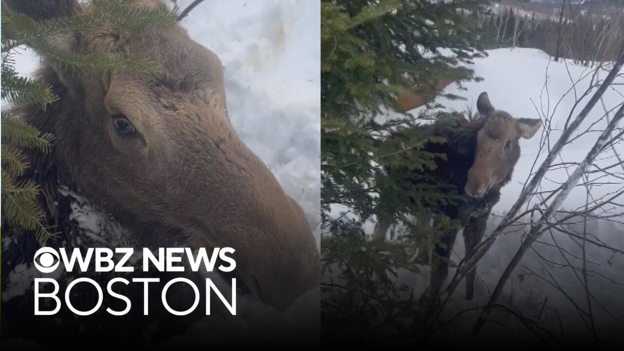 Snowmobile riders rescue moose trapped in snow in New Hampshire