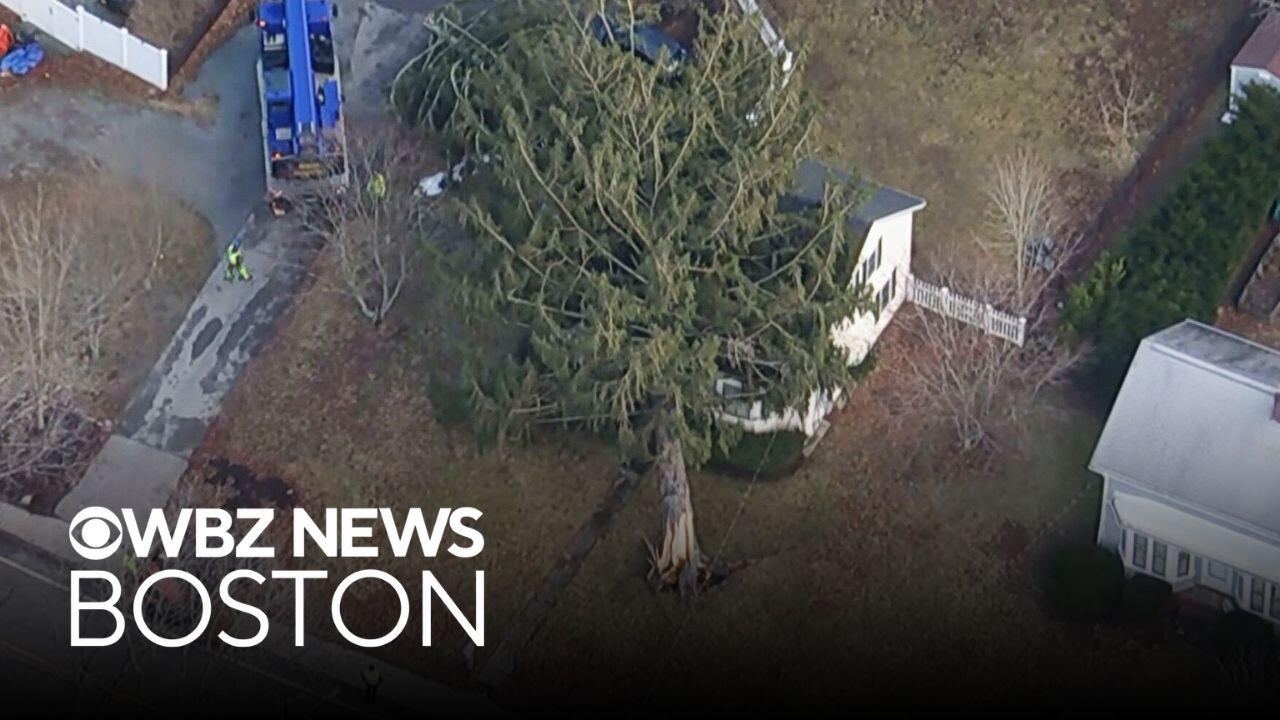 WBZ-TV’s Levan Reid went to Norwell, where a large tree came crashing down on power lines early Tuesday.