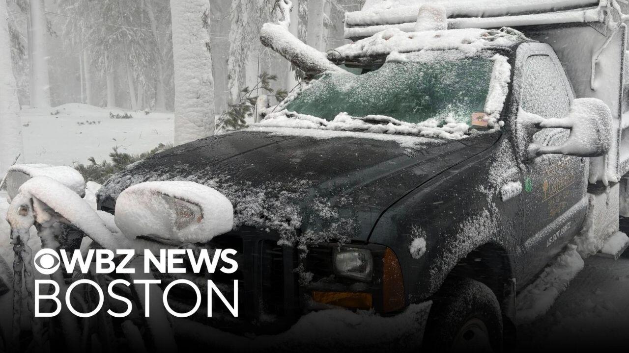 Tree branch nearly impales plow truck driver during Massachusetts blizzard
