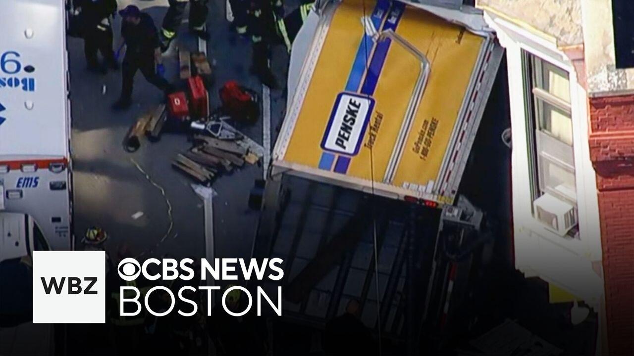 A truck crashed into a building near the corner of Harrison Avenue and Kneeland Street in Boston Tuesday afternoon. WBZ TV's Cheryl Fiandaca reports.
