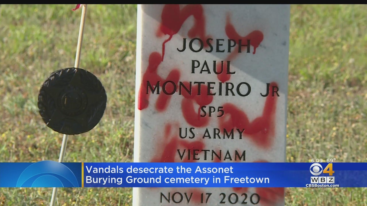 A number of gravestones at the Assonet Burying Ground were stained with red paint and graffiti.