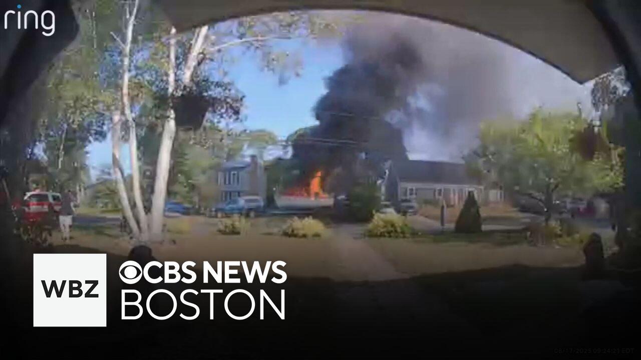 A boat went up in flames in a yard on Cape Cod Sunday morning, leaving a man with serious burns that required him to be taken to a burn center in Boston. WBZ-TV's Samantha Chaney reports.