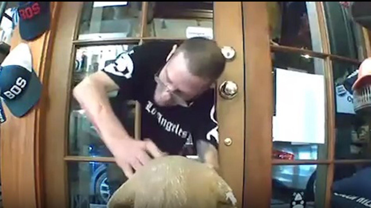 Video shows man breaking glass to get into Beacon Hill gift shop