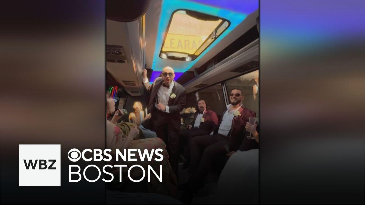 A newlywed couple from Massachusetts got a big surprise on the way to their reception when their party bus struck a bridge on Soldiers Field Road.