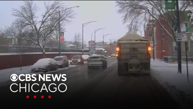 Snow plows and salt spreaders were out throughout the Chicago area early Sunday morning, with the snow falling, working on all corners of the city to keep the streets safe.