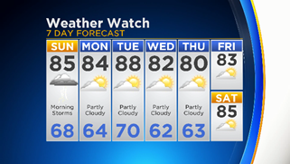 Lows will be near 70 Saturday night.
