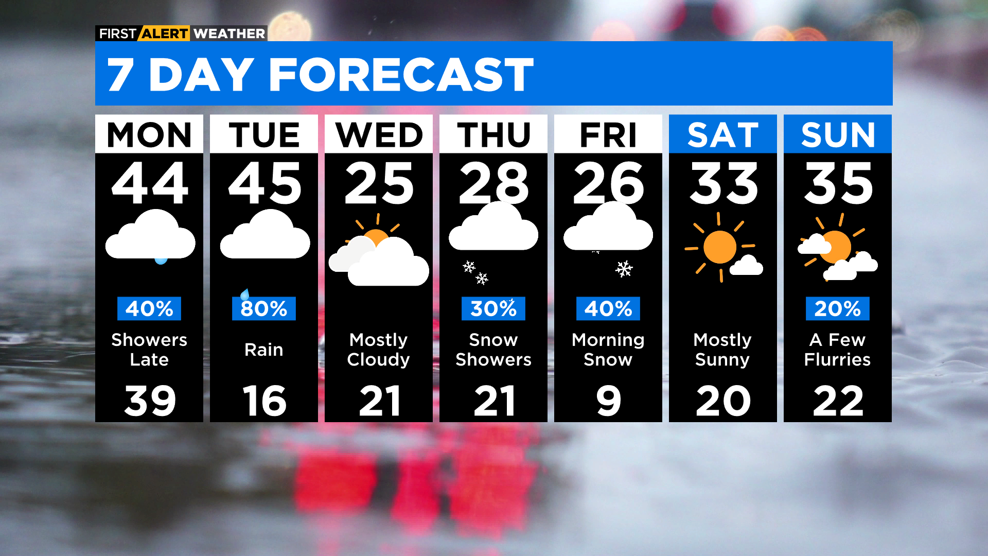 Monday's temperatures will be in the 40s with some areas south of the city coming close to 50 degrees.
