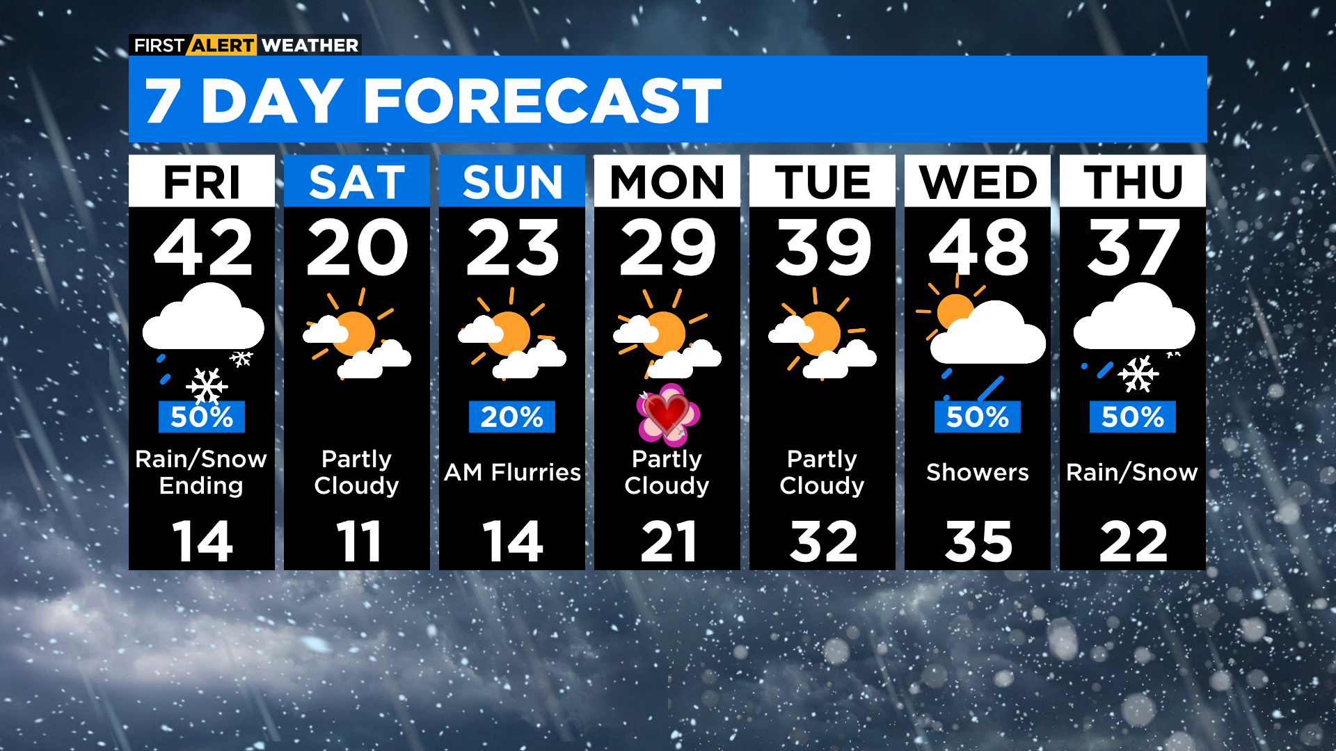 Saturday and Sunday's high temperatures will be near 20 degrees.