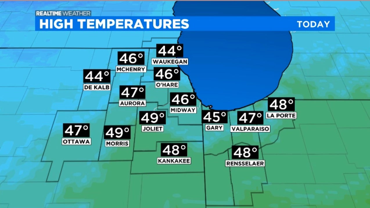 Saturday will stay cold, in the mid to upper 40s, but the sun will return. The normal high would be 50 degrees.