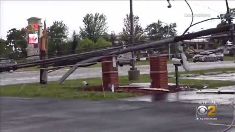 Damaging winds moved through Sleepy Hollow around 3 p.m. near I-90 and Randall Road, bringing down power lines. Wind gusts were between 50 and 55 mph. Trees the were one to two feet in diameter were taken down in DeKalb. Wind gusts were reported up to 71 mph in Morris and Addison. Trees were reported down on cars in Elmwood Park.