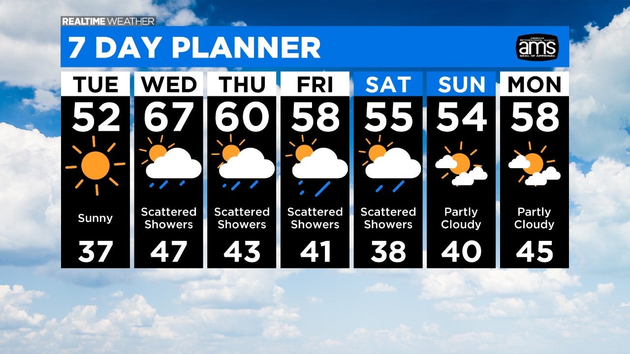 By Wednesday, temperatures will climb to the 60s. By the afternoon, rain showers and storms are expected to move into the Chicago area.