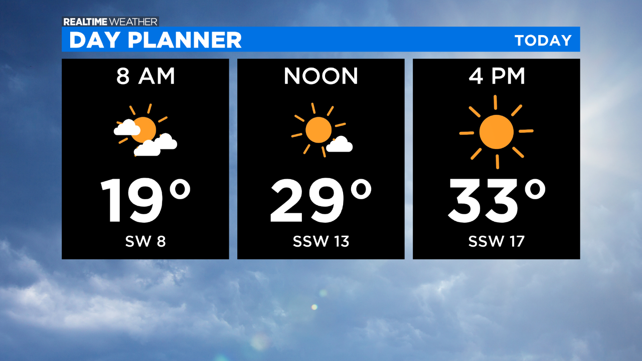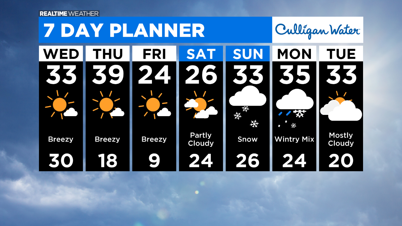 Wednesday will be mostly sunny and breezy with high temperatures in the low 30's.