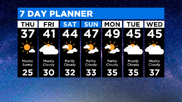 The warmer, calm weather will continue into the weekend with temperatures in the 40s.