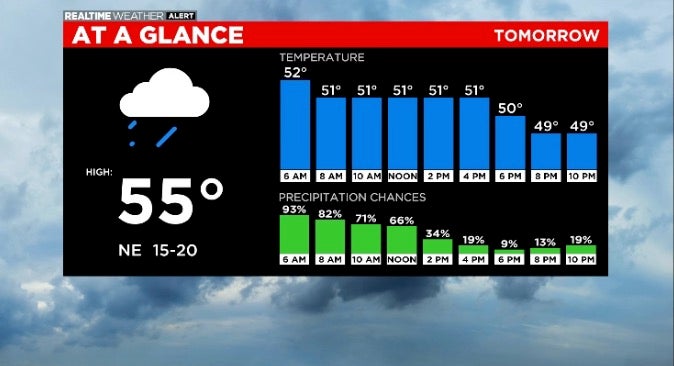 Today- rain, heavy at times, high of 55.