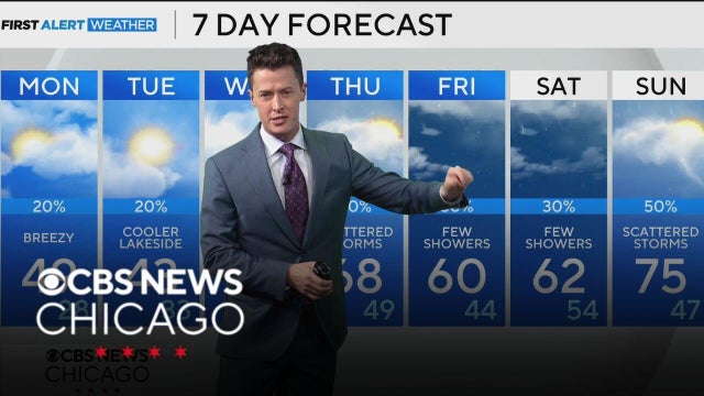 Meteorologist David Yeomans says Monday will turn noticeably cooler and breezy behind a cold front, with highs struggling to get out of the 40s north of I-80. Gusty winds will add to the chill.