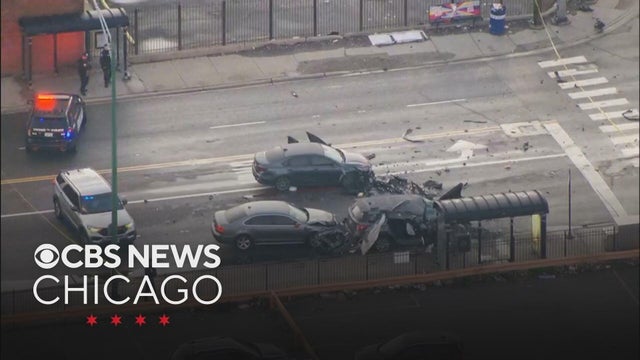 A busy intersection where Chicago meets suburban Cicero, Illinois, was shut down early Monday after two police officers were injured in a crash. Derek Peters reports from CBS Skywatch.