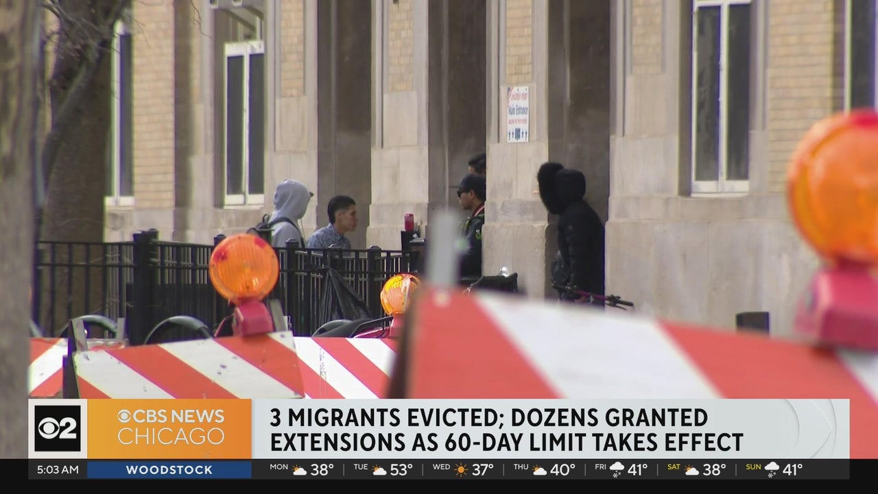 Evictions were scheduled for Sunday for nearly three dozen migrants at three different city-run shelters in Chicago. Those set to be evicted had hit the 60-day shelter limit, although some received extensions. However, it turns out only three people were removed.