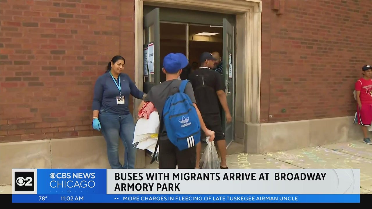 Buses carrying migrants have begun arriving at a new shelter at a Chicago Park District fieldhouse in the Edgewater neighborhood.