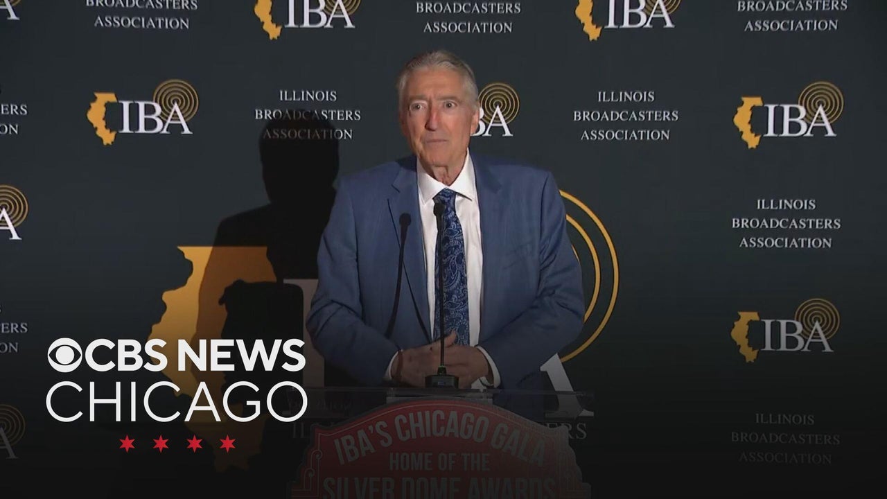 Longtime Cubs broadcaster Pat Hughes as inducted into the Illinois Broadcaster Association's Hall of Fame Thursday night.