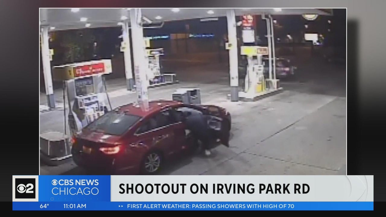 One person was injured in a shootout that left a trail of bullets through buildings and in the street early Friday morning in the Irving Park neighborhood.