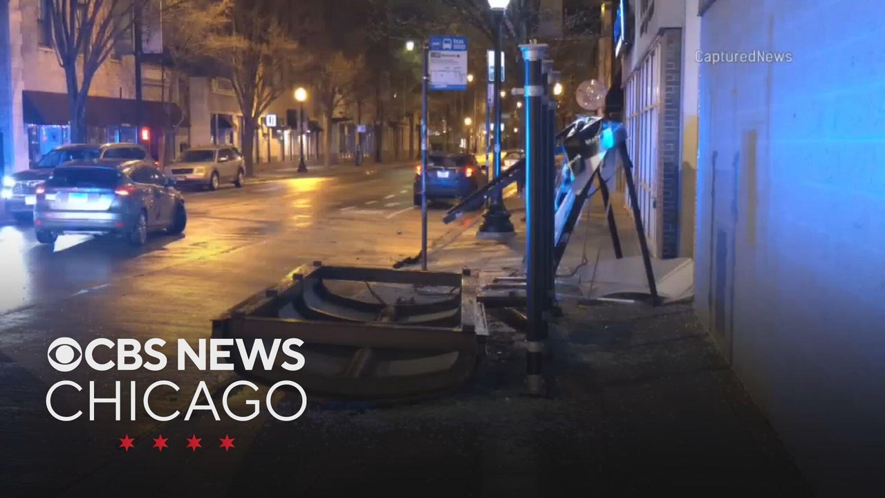 Man hurt after car crashes into bus stop in Chicago's Lakeview community