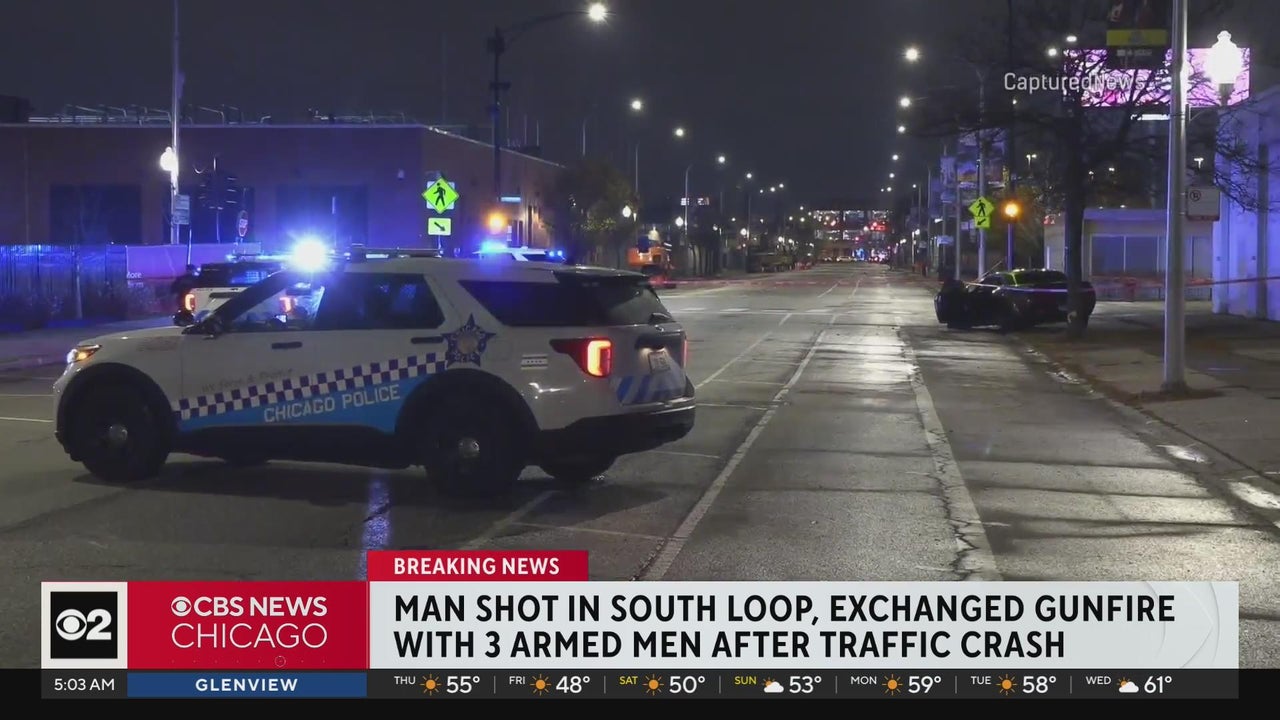 Chicago police said just after 9 p.m., a 29-year-old man was standing outside of his car on Des Plaines, just south of Harrison, after a crash.