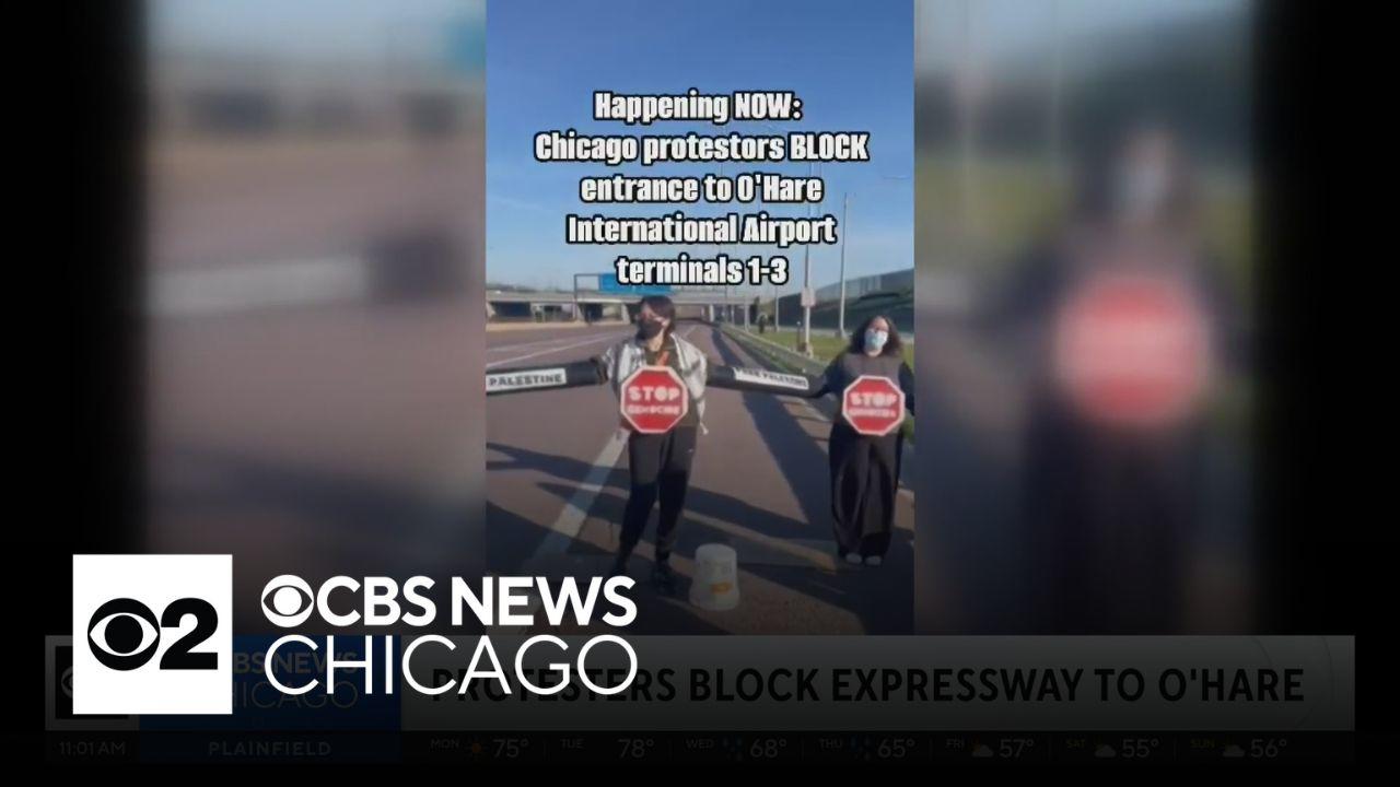 Protesters block road to O'Hare Airport, calling for "Free Palestine"