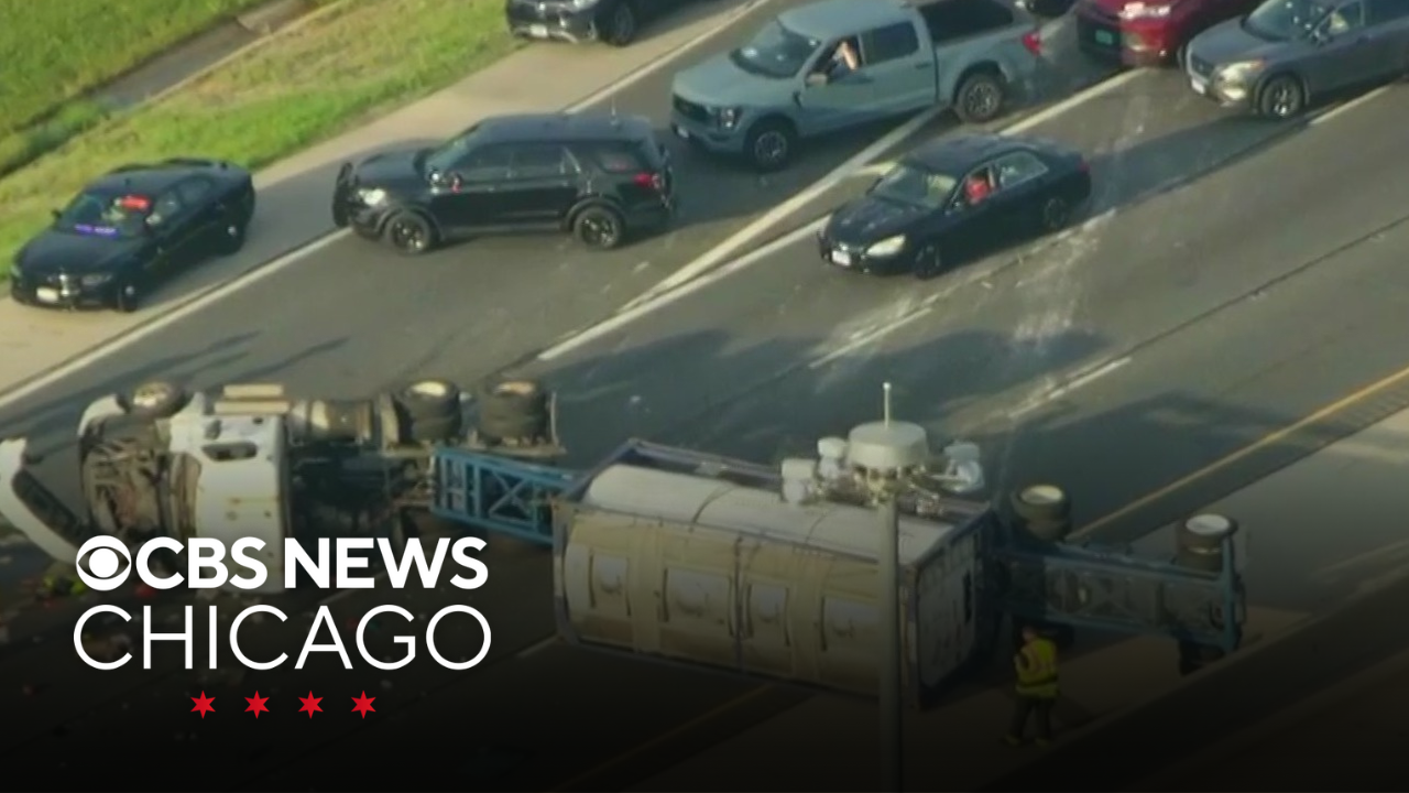 Semi truck rolls over on Northbound I-55 near Willowbrook, Illinois