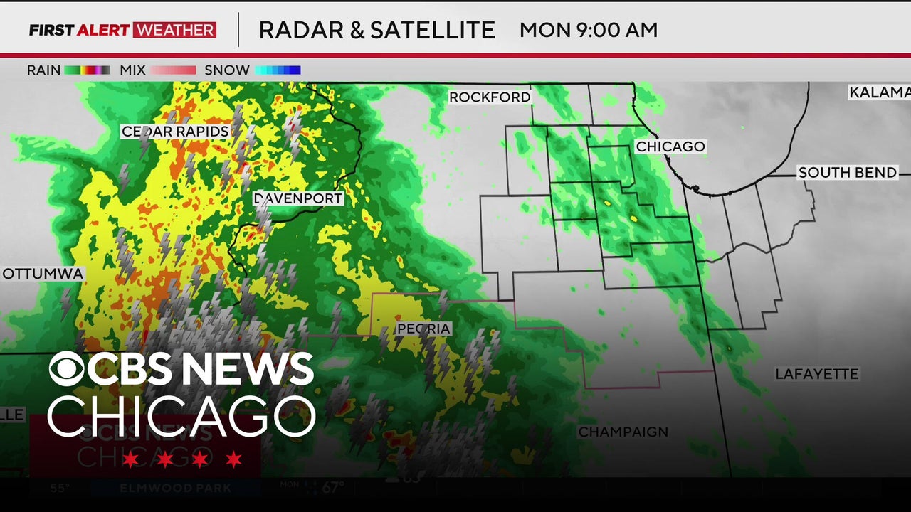 Severe weather in Chicago Monday is expected to arrive with two rounds of storms, the first over lunch and the second in the evening, though the strongest storms are expected in central and southern Illinois.