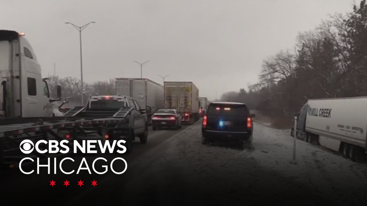 A number of cars and semi-trailer tracks went off the road on north suburban expressways Wednesday. Noel Brennan reports from the Mobile Weather Lab.