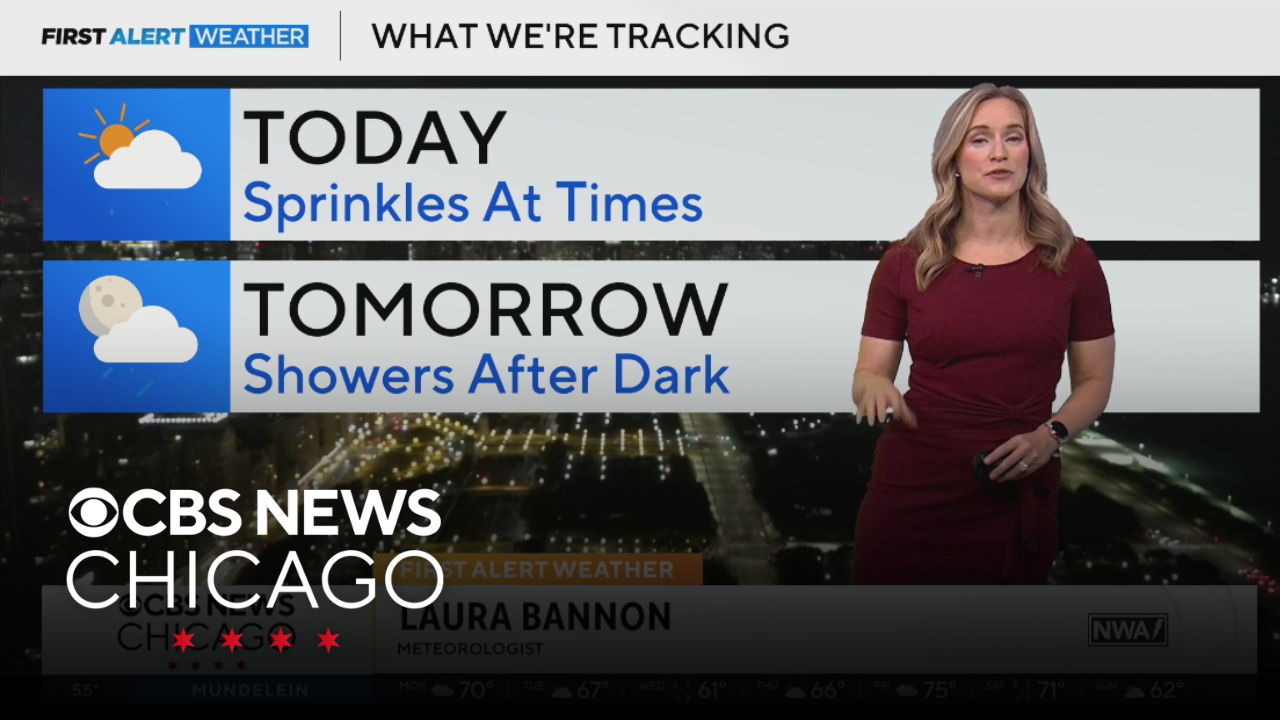 Sprinkles at times in Chicago on Monday