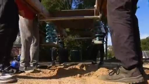 Inside a freighter container are parts for a playground. It's all thanks to a big idea, designed by a suburban Chicago high school Eagle Scout. CBS 2's Jim Williams explains.