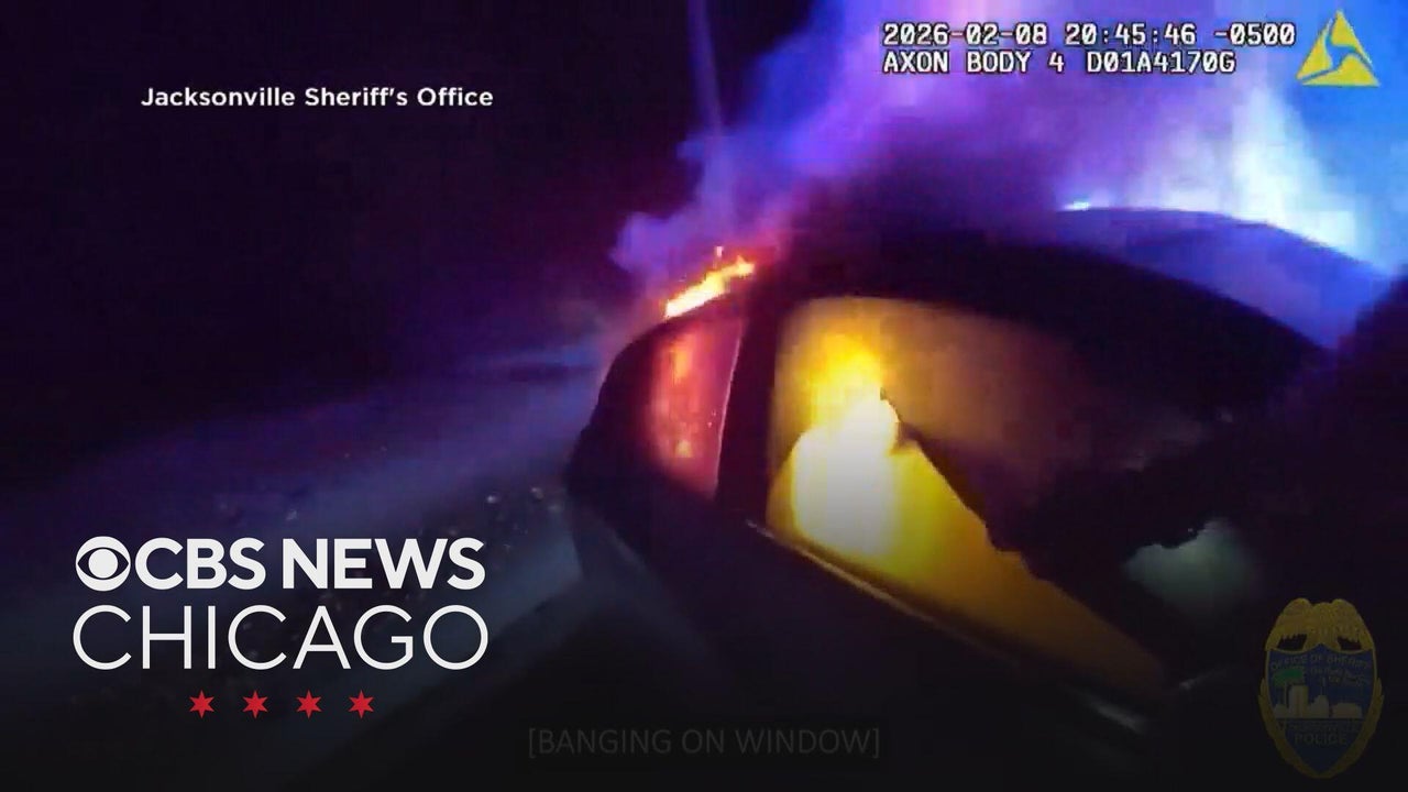 A police officer's body camera captured the terrifying rescue of a woman from a fiery car crash in Florida.