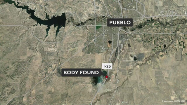 Firefighters discovered a body inside a burning car near I-25 in southern Colorado.