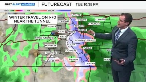 12-24" of snow across the mountains of Colorado with rain in Denver.