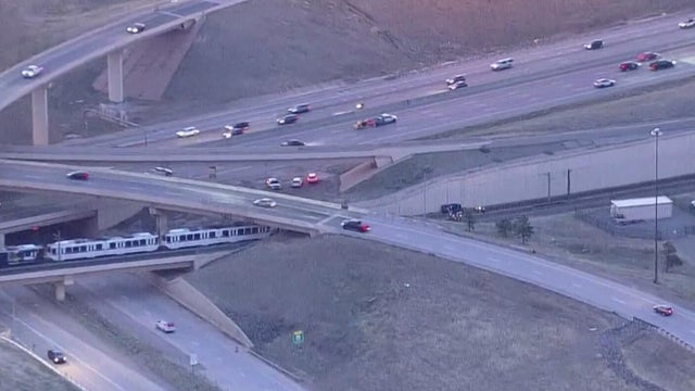 One person was killed when a vehicle drove off the overpass at the I-25 and C-470 interchange south of the Denver metro area and then was struck by a light rail train.