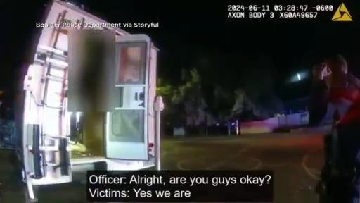 Body cam footage shows a suspect being under arrest after allegedly stealing a truck that had a camper attached with a couple sleep inside.
