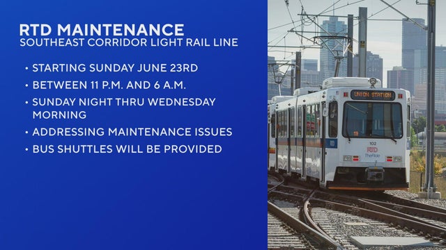 RTD is set to do maintenance on tracks that its E and R lines run on, the transit agency says. The work is expected to take place overnight for several days.
