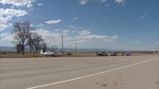 A small plane that took off in Cheyenne, Wyoming made an emergency landing on a Colorado highway Sunday afternoon. No injuries were reported but crews are now working to tow it away -- if possible, however, police will close the road and let the pilot take off.