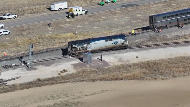An Amtrak train with dozens of people on board derailed after hitting a semi-truck hauling milk that was obstructing the tracks.
