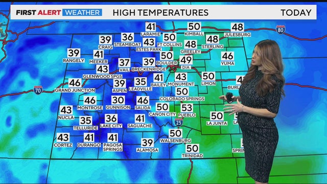 High temperatures on Monday will climb into the upper 40s, low 50s for the Denver metro and Front Range, as light snow moves into the high country this afternoon.